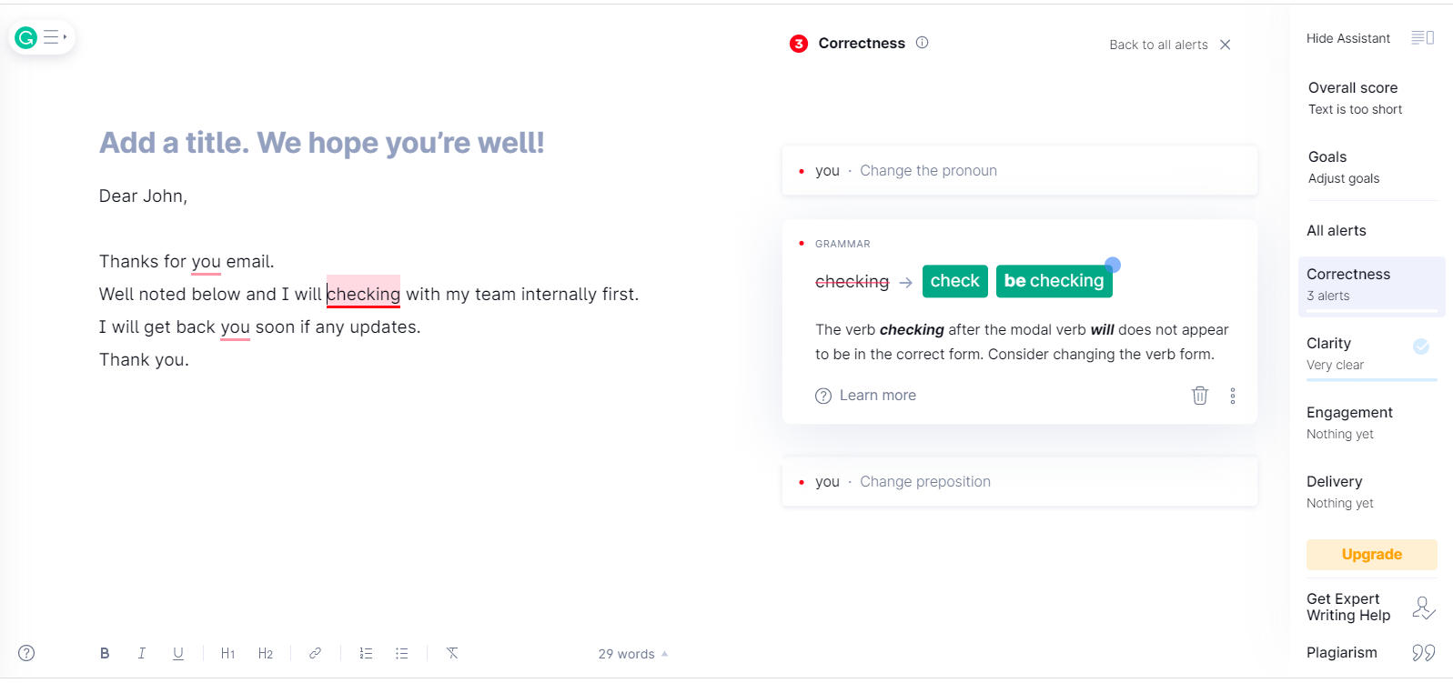 Grammarly 같은 영어 문법 검사기 프로그램이 100% 정확성을 갖지는 않으며 굳이 의존을 많이 할 필요는 없겠지만 모국어가 아닌 사람들이 간단하게 그리고 효율적으로 영어 이메일, 영어 과제, 영어 포스팅 등에 영어 문법, 철자 교정을 받을 수 있는 프로그램이란 건 확실한 듯합니다.