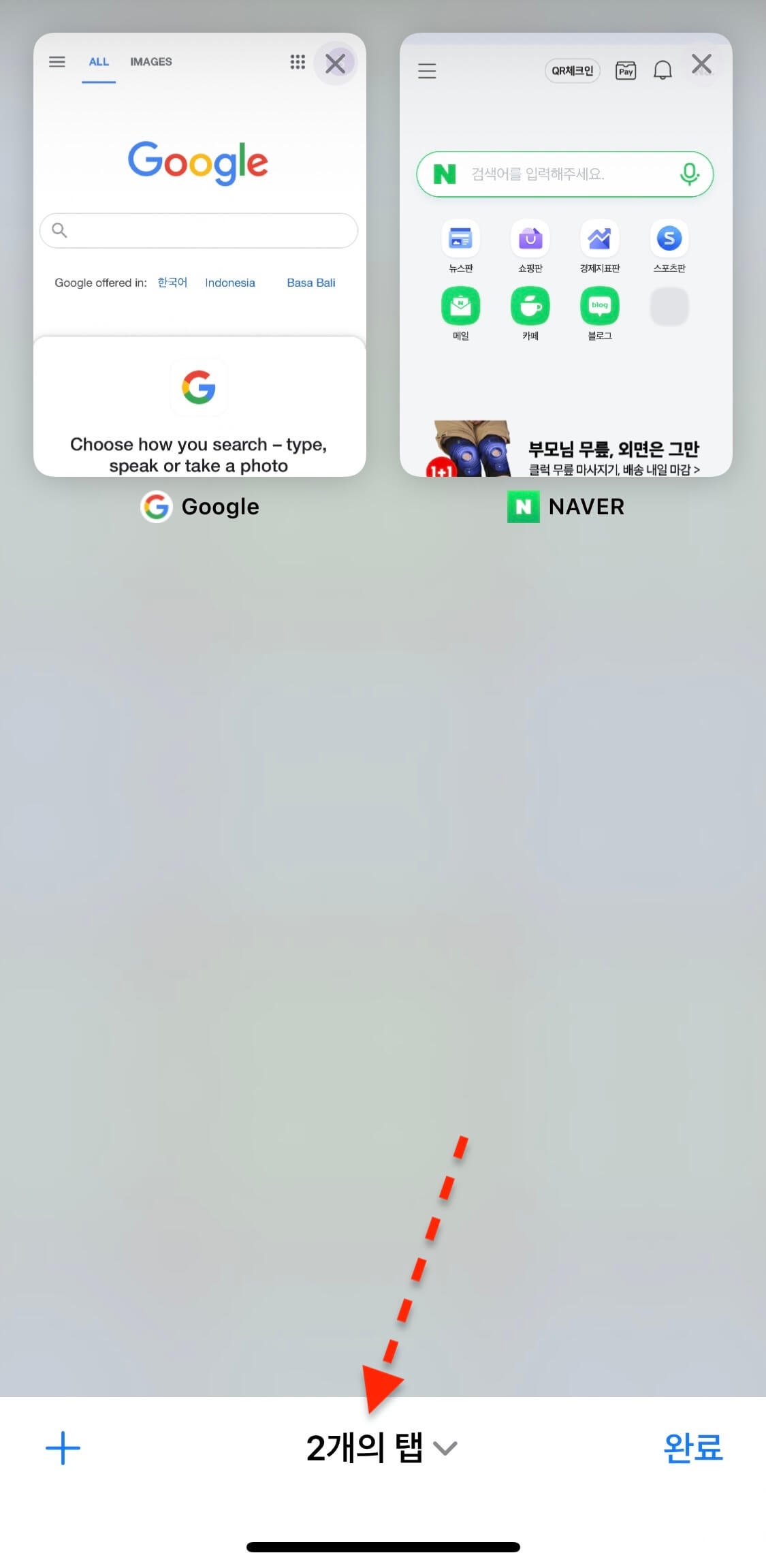 -개인 정보 보호 브라우징 모드를 끄고 싶다면 다시 하단 오른쪽 아이콘을 길게 누른 다음 이 탭 닫기 (X)를 누르면 됩니다.